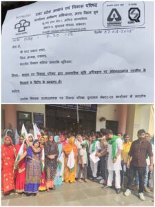 आवास विकास के उच्च अधिकारियों के द्वारा लिखित में आश्वासन मिलने के बाद में किसानों ने खत्म किया धरना