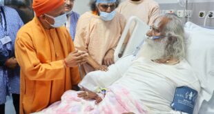 सीएम योगी आदित्यनाथ ने लखनऊ के मेदांता हॉस्पिटल में नृत्य गोपाल दास महाराज से की मुलाकात